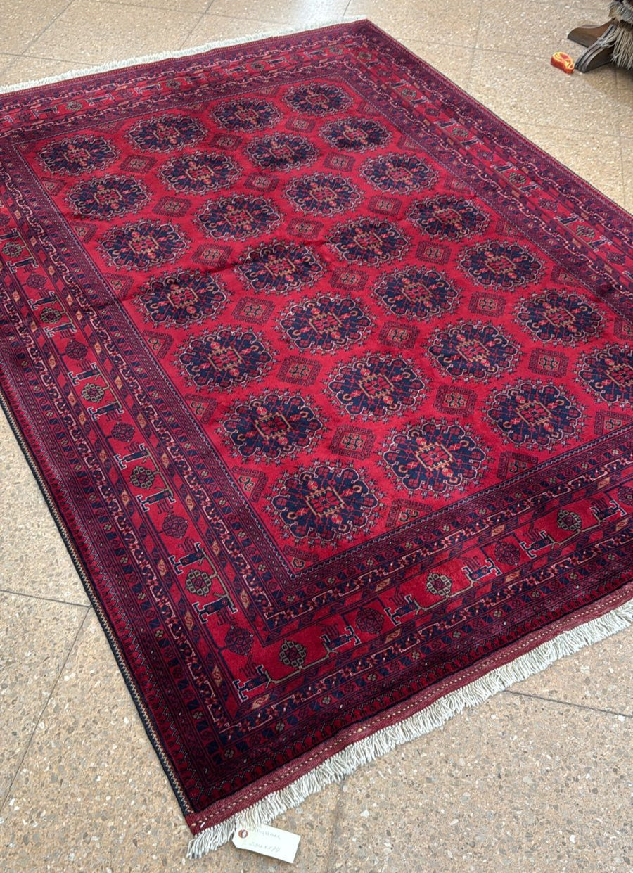 De las tierras afganas nacen alfombras que parecen narrar historias antiguas. En ellas dominan los rojos oscuros y los burdeos intensos, dibujando formas geométricas llamadas guls. Más que un objeto, son huellas vivas de la artesanía que transforman cualquier ambiente.