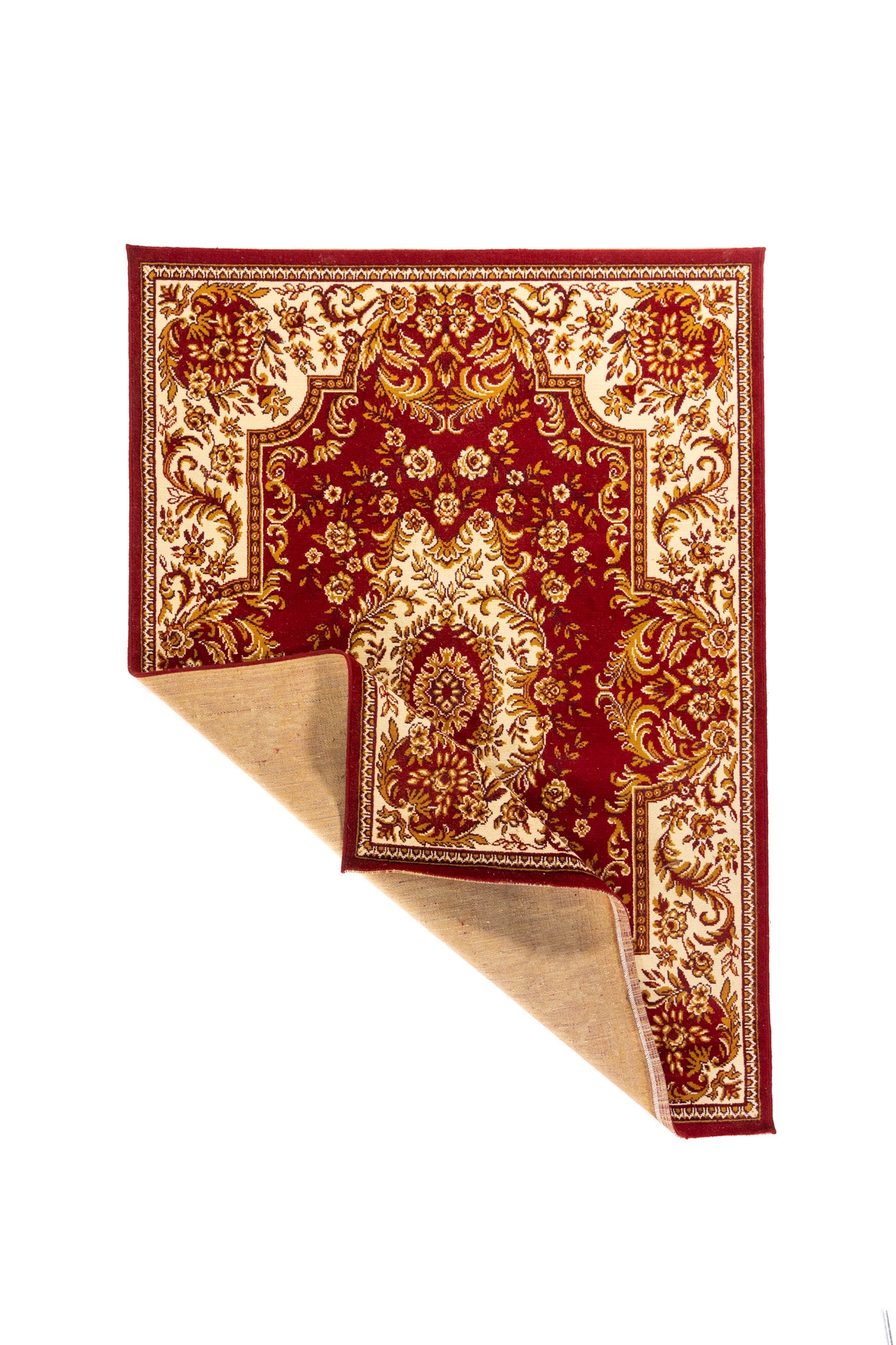 Diseño: Esta alfombra destaca por su vibrante fondo rojo, que llena el espacio de calidez, energía y elegancia. El diseño central, enmarcado por un medallón ornamental y delicados motivos florales en tonos blanco suave y dorado, crea una composición refinada y armónica. Las curvas decorativas y los detalles inspirados en estilos clásicos aportan una sensación de sofisticación atemporal, mientras que el contraste entre el rojo profundo y el fondo claro realza cada elemento del dibujo. Es una pieza ideal para dar protagonismo a cualquier ambiente, aportando carácter, distinción y una belleza decorativa de gran riqueza visual.